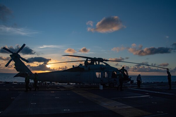 PHILIPPINE SEA - USS America (LHA 6), the Navy’s only forward-deployed amphibious assault ship, participated in cyclic flight operations with HMS Queen Elizabeth (R 08) in the Philippine Sea, Aug. 22-24.