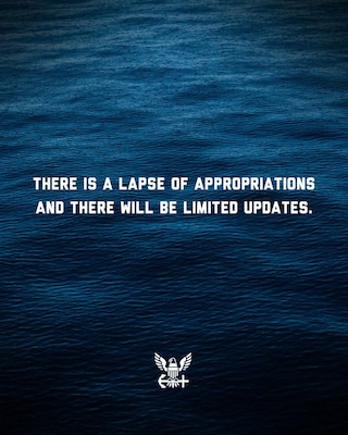 Lapse of Appropriations: The most recent appropriations for the Department of War expired at 11:59 p.m. EDT on Sept. 30, 2025. Military personnel will continue in normal duty status, without pay, until such time as a continuing resolution or appropriations are passed by Congress and signed into law. Civilian personnel not engaged in excepted activities will be placed in a non-work, non-pay status. Please reference resources link for more information: https://www.navy.mil/Press-Office/News-Stories/display-news/Article/4319360/fy26-lapse-of-appropriations-department-of-the-navy-resources-for-sailors-marin/