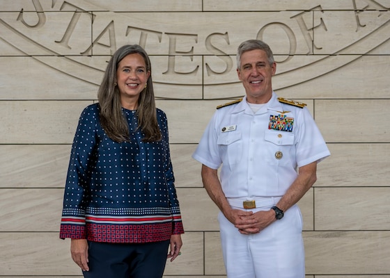 Adm. Steve Koehler, commander, U.S. Pacific Fleet, and U.S. Charge d'Affaires to Sri Lanka Jayne Howell pose for a photo during Koehler’s visit to Colombo, Sri Lanka, Feb. 19, 2026. The visit to Sri Lanka reaffirmed the U.S. commitment to building strong partnerships that advance a free, open, and prosperous Indo-Pacific. (U.S. Navy photo by Mass Communication Specialist 2nd Class Jeremy R. Boan)