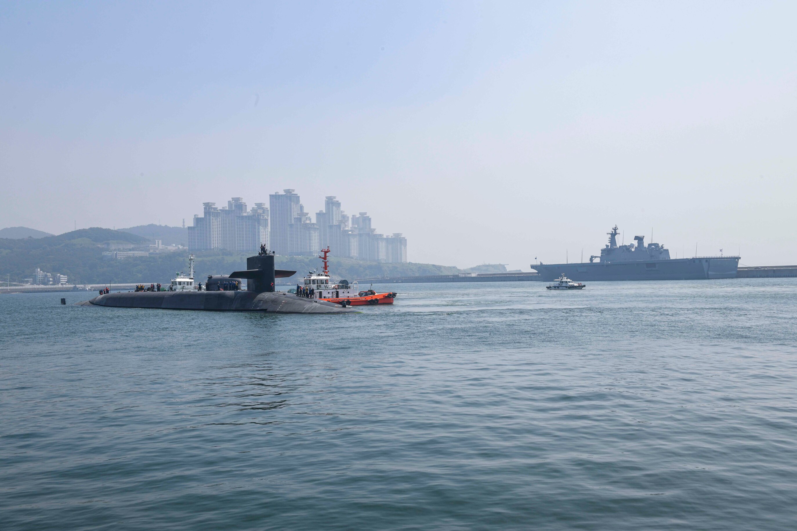 230616-N-ZU710-0110 BUSAN, Republic of Korea (June 16, 2023) The Ohio-class guided-missile submarine USS Michigan (SSGN 727) arrives in Commander, Republic of Korea Fleet base in Busan, Republic of Korea. The Navy's guided-missile submarines provides strike and special operation mission capabilities from a stealthy, clandestine platform. The port visit in Busan reflects the United States' commitment to the Indo-Pacific region, and compliments the many exercises, training, operations and other military cooperation activities conducted by U.S. submarine forces with our Republic of Korea allies. (U.S. Navy Photo by Mass Communication Specialist 1st Class Michael Chen/Released)
