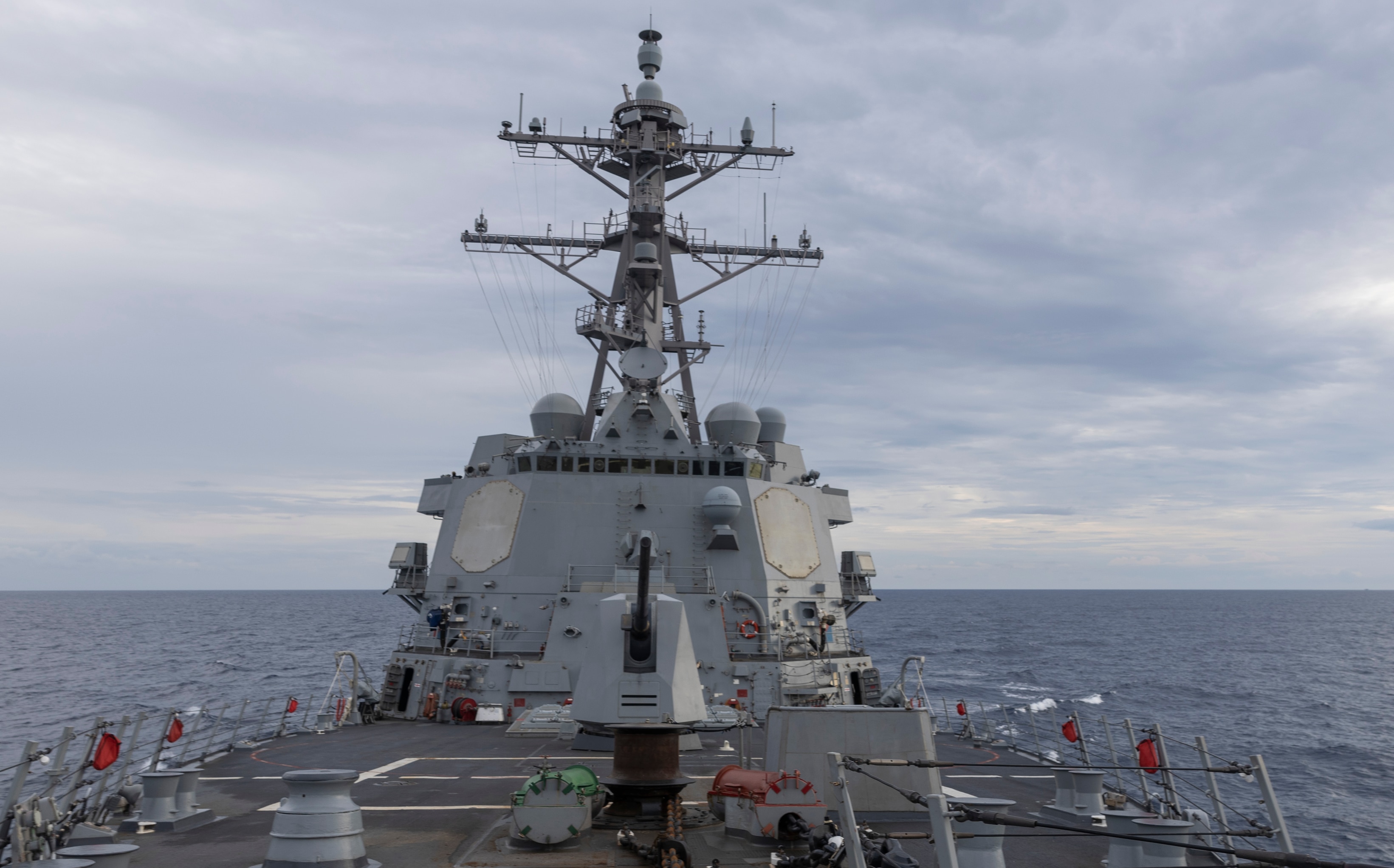 SOUTH CHINA SEA (Sept. 15, 2025) – Arleigh Burke-class guided-missile destroyer USS Dewey (DDG 105) conducts bilateral training with the Royal Australian Navy in the South China Sea, Sept. 15. Dewey is forward deployed and assigned to Destroyer Squadron (DESRON) 15, the Navy’s largest DESRON and the U.S. 7th Fleet’s principal surface force. (U.S. Navy photo by Mass Communication Specialist 2nd Class Oscar Diaz)