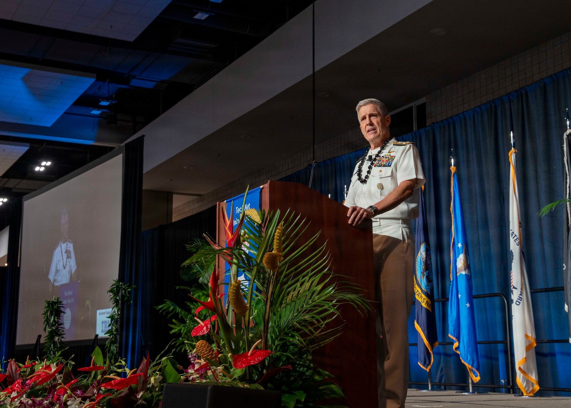 Adm. Steve Koehler, commander, U.S. Pacific Fleet, delivers the keynote address at TechNet 2025