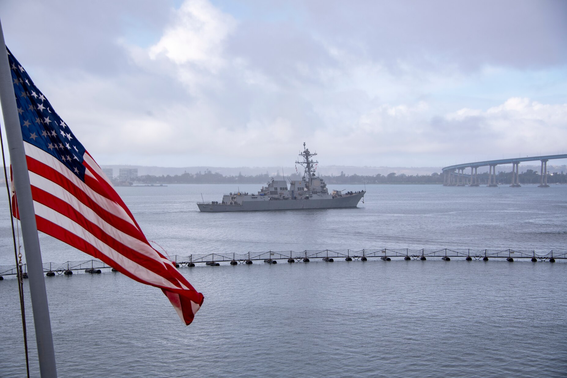 Arleigh Burke-class guided-missile destroyer USS Spruance (DDG 111) departs Naval Base San Diego for routine operations, Nov. 21, 2025. An integral part of U.S. Pacific Fleet, U.S. 3rd Fleet operates naval forces in the Indo-Pacific and provides the realistic, relevant training necessary to execute the U.S. Navy’s role across the full spectrum of military operations. U.S. 3rd Fleet works together with our allies and partners to advance freedom of navigation, the rule of law, and other principles that underpin security for the Indo-Pacific region. (U.S. Navy photo by Mass Communication Specialist 2nd Class Nettie Mae Manfull)