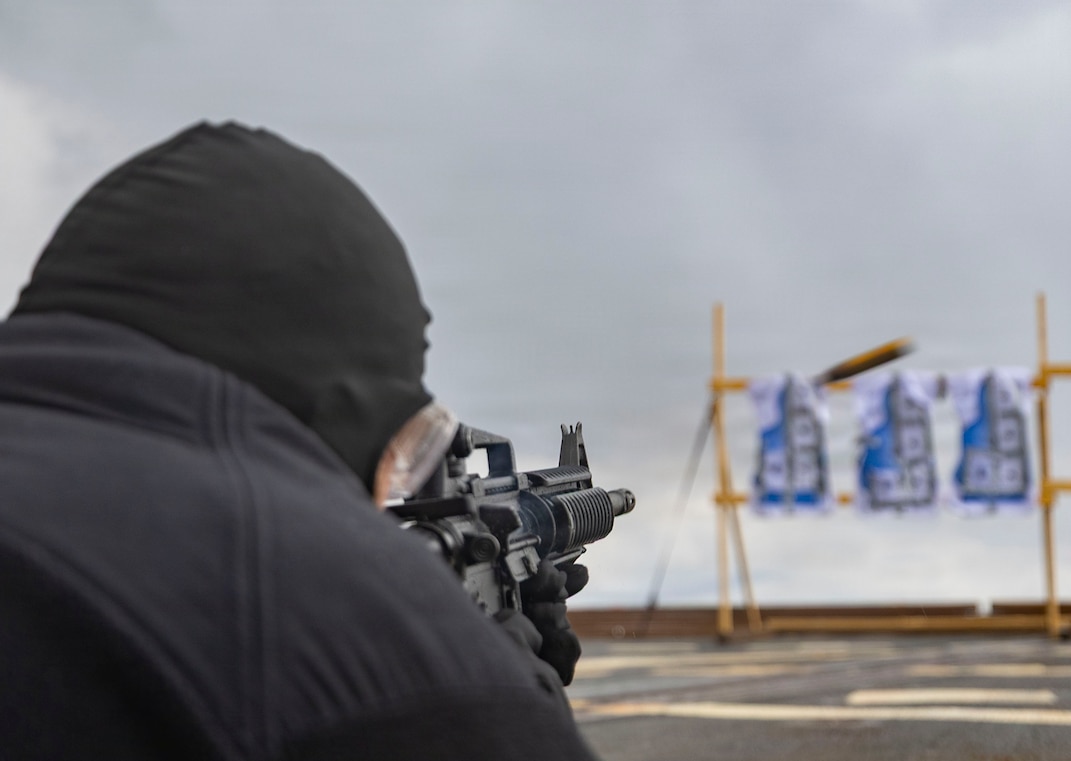 U.S. Navy Sonar Technician Surface 3rd Class Anson Bahr fires an M4A1 rifle during a small arms qualification course on the flight deck of Arleigh Burke-class guided-missile destroyer USS Dewey (DDG 105) while operating in the Sea of Japan, Jan. 26, 2026. Dewey is forward deployed and assigned to Destroyer Squadron (DESRON) 15, the Navy’s largest DESRON and the U.S. 7th Fleet’s principal surface force. (U.S. Navy photo by Mass Communication Specialist 2nd Class Oscar Diaz)