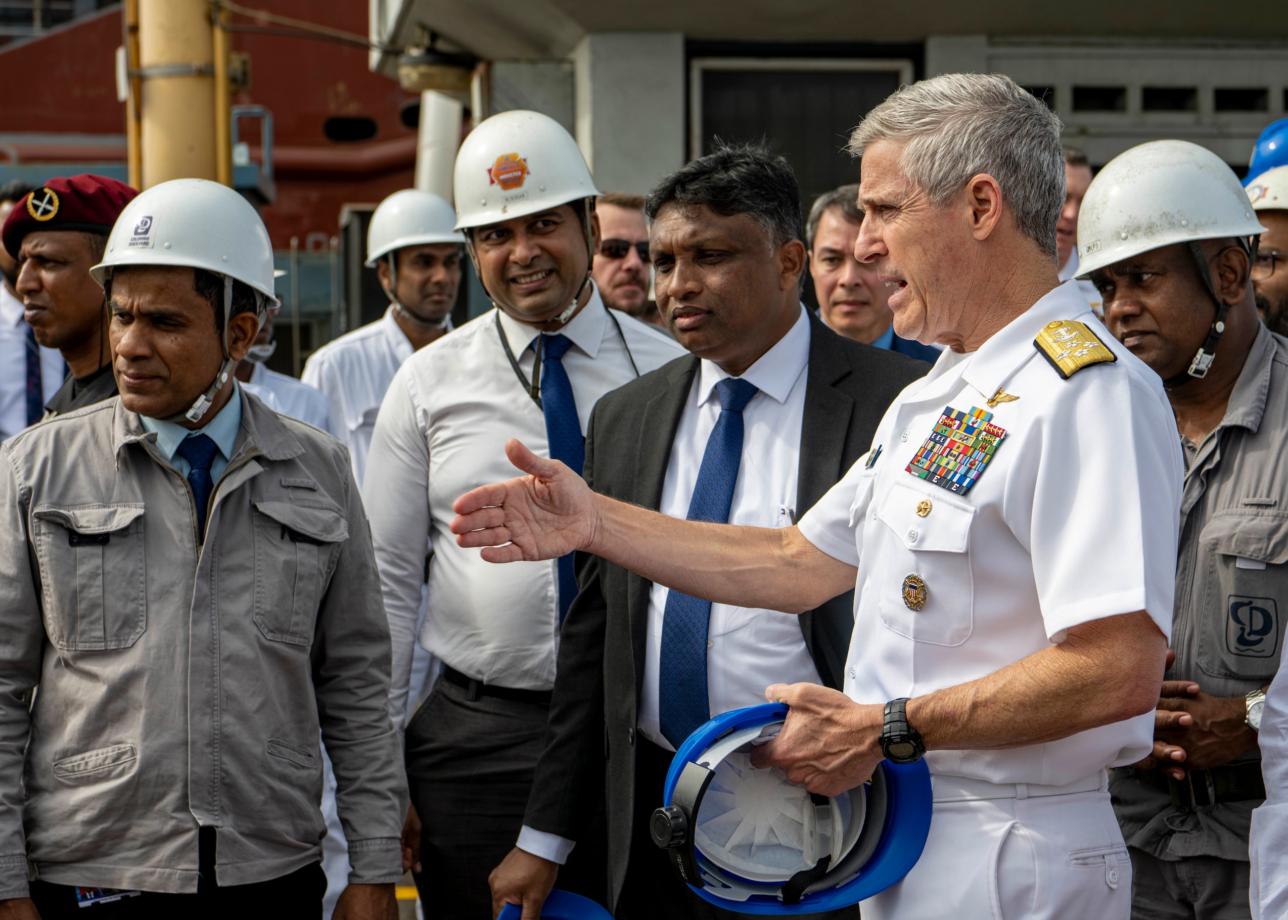 Adm. Steve Koehler, commander, U.S. Pacific Fleet, tours Colombo Dockyard with Dockyard leadership during his visit to Sri Lanka, Feb. 20, 2026. The visit to Sri Lanka reaffirmed the U.S. commitment to building strong partnerships that advance a free, open, and prosperous Indo-Pacific. (U.S. Navy photo by Mass Communication Specialist 2nd Class Jeremy R. Boan)