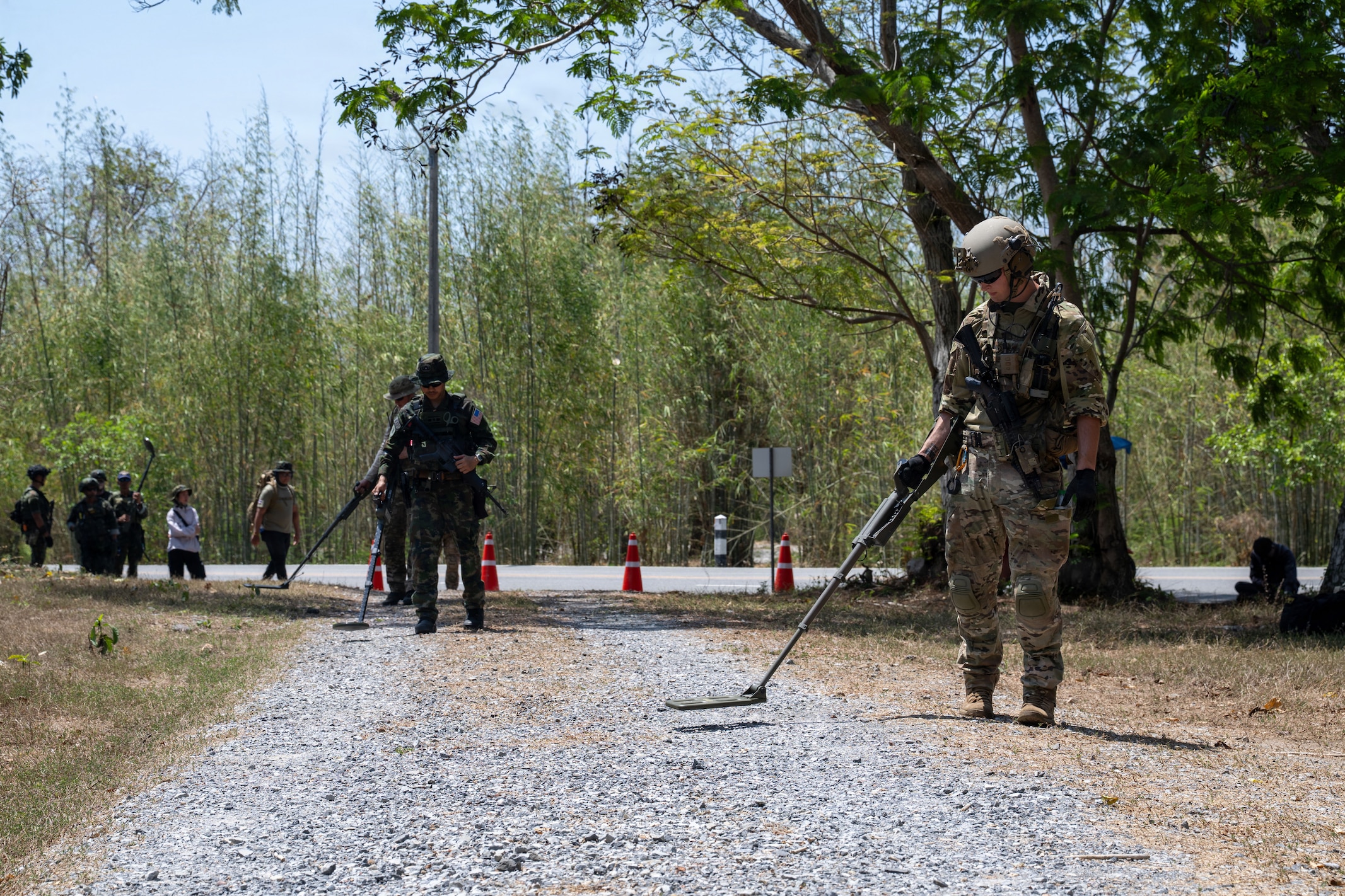SATTAHIP, Thailand (March 2, 2026) - U.S. Navy and Royal Thai Navy Explosive Ordnance Disposal technicians conduct surface and improvised explosive device (IED) scenario training, locating and disposing of IEDs as part of Exercise Cobra Gold 2026 in Sattahip, March 2. Cobra Gold is the Indo-Pacific’s largest annual military exercise in mainland Asia, co-hosted by the U.S. and Thailand. The exercise brings together participants from multiple nations for military training and humanitarian projects that strengthen regional partnerships and demonstrate U.S. commitment to Indo-Pacific Security. (U.S. Navy photo by Natasha Ninete)