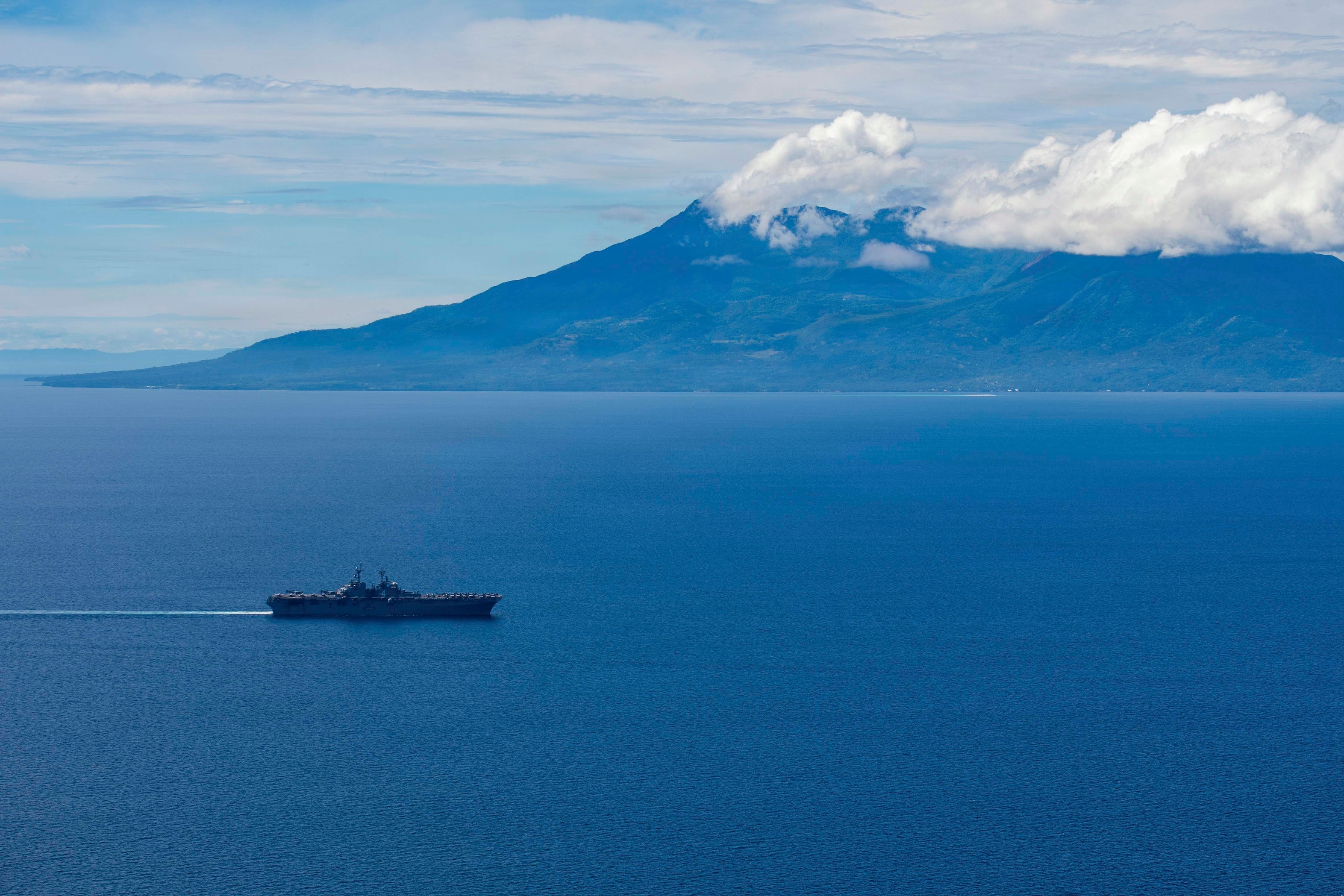 Wasp-class amphibious assault ship USS Boxer (LHD 4) transits the Surigao Strait, April 26, 2026. Boxer, flagship of the Boxer Amphibious Ready Group, is underway with the 11th Marine Expeditionary Unit in the U.S. 7th Fleet area of operations. U.S. 7th Fleet, the Navy’s largest forward-deployed numbered fleet, routinely interacts and operates with allies and partners to preserve a free and open Indo-Pacific. (U.S. Navy photo by Mass Communication Specialist Seaman Dustin Drake)